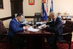 Сегодня состоялась рабочая встреча главы местной администрации г. Баксана Хачима Мамхегова и директора ПАО "Россети Северный Кавказ - "Каббалкэнерго" Муртаза Карова.