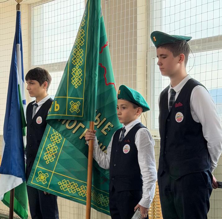 Мероприятие, цель которого - формирование патриотического сознания, духовно-нравственного воспитания подрастающего поколения, возрождение исторической преемственности, началось с выноса государственных флагов. Почетное право вынести флаги Российской Федерации и Кабардино-Балкарской Республики было предоставлено отличникам учёбы и призёрам олимпиад - ученикам 10-х классов Самиру Калову и Исуфу Дышекову.
