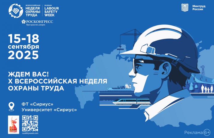 X Всероссийская неделя охраны труда (ВНОТ) состоится с 15 по 18 сентября 2025 года на территории Университета «Сириус» (Федеральная территория «Сириус»).