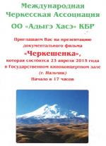 23 апреля 2015 года в Государственном концертном зале (г. Нальчик) состоится презентация документального фильма «Черкешенка».
