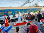Сегодня в 8 часов 40 минут, непрерывно гудя и выпуская густой пар, в Нальчик прибыл поезд Деда Мороза, сообщил корреспондент РИА КБР.