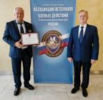Награда нашему земляку вручена за многолетнюю активную общественную деятельность по социальной поддержке ветеранов боевых действий и патриотическому воспитанию молодежи.