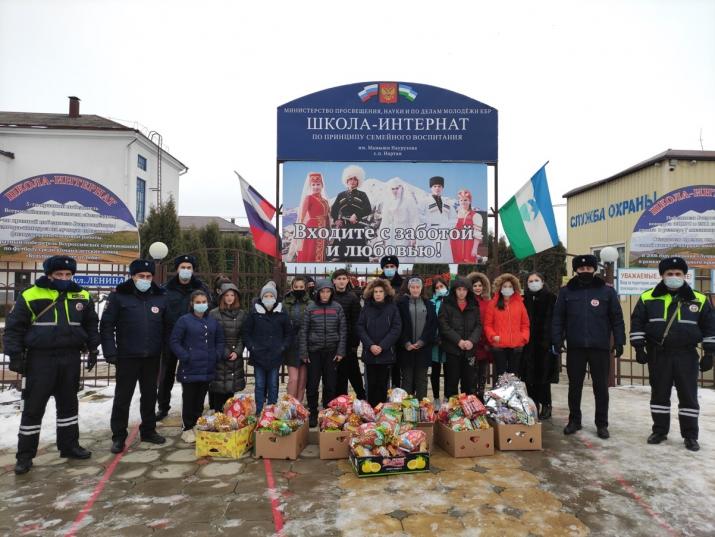 В КБР полицейские поздравили воспитанников интернатаВ преддверии наступающего Нового года, в рамках всероссийской благотворительной акции «Полицейский Дед Мороз» сотрудники отдела МВД России по Чегемскому району посетили ГКОУ «Школа – интернат для детей сирот и детей, оставшихся без попечения родителей №5 с. Нартан МОН КБР». С учетом начинающихся новогодних каникул стражи порядка не только провели профилактическую беседу с подростками об основах законопослушного поведения и ответственности за противоправные действия, но и не вручили ребятам новогодние подарки. От имени руководства территориального органа и всего личного состава подразделения полицейские поздравили ребят и педагогов с наступающим Новым годом и пожелали всем здоровья и удачи в новом году, сообщает пресс-служба МВД по Кабардино-Балкарской Республике.