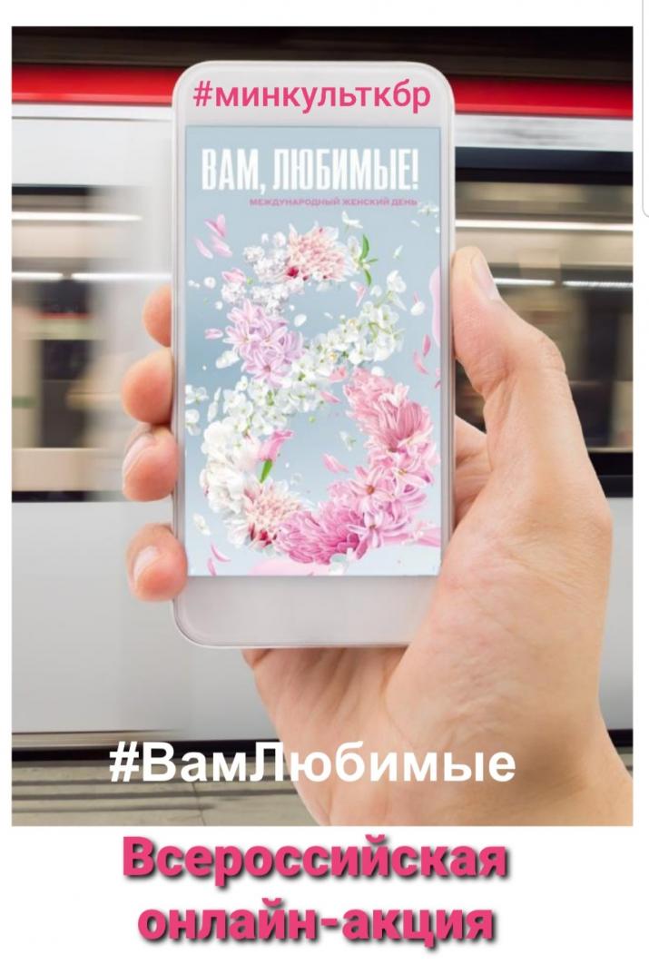 Интернет-акция к женскому днюМинистерство культуры КБР присоединяется к всероссийской онлайн-акции "Вам, любимые!", приуроченной к празднованию Международного женского дня. В эти дни необходимо в своих аккаунтах выложить поздравительный пост с официальными хэштегами акции: #МинкультКБР, #ВамЛюбимые.