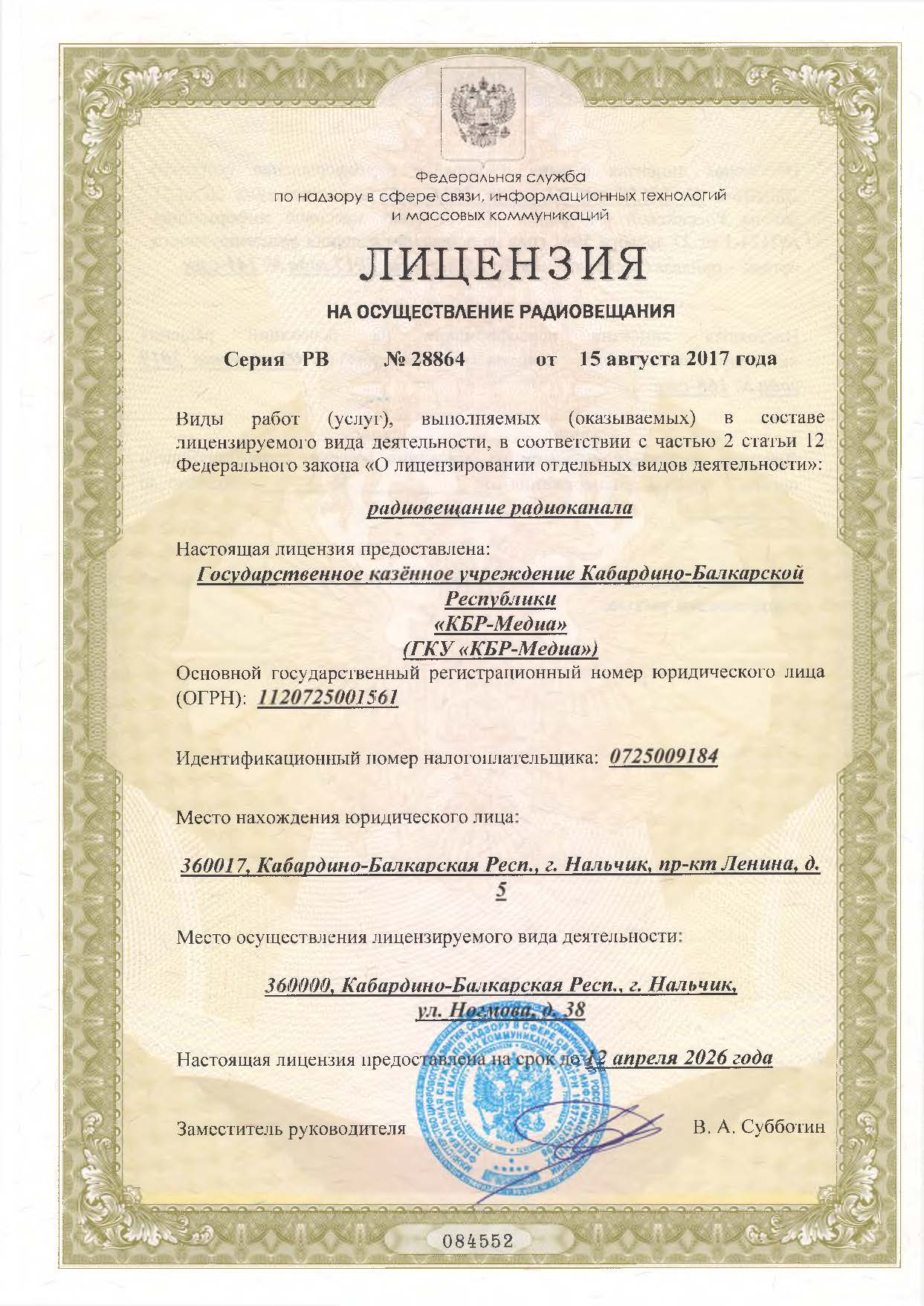 - сетевое издание «Государственное телевидение КБР» через платформу ВКонтакте вещает круглосуточно на портале СМИ КБР;