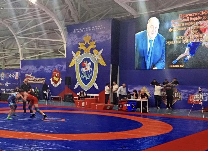 В Нальчикском универсальном спортивном комплексе проходит первенство СКФО по вольной борьбе среди спортсменов до 23 лет, сообщает корреспондент РИА «Кабардино-Балкария».