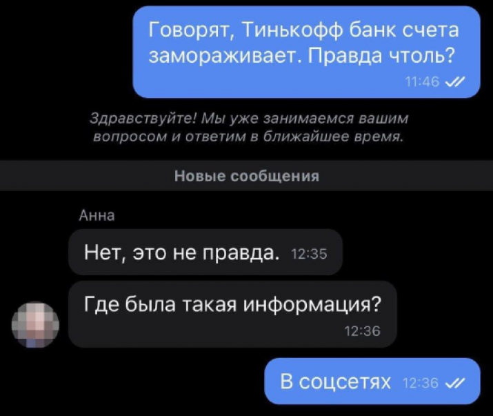 Банк «Тинькофф» работает в штатном режиме![]() На украинском телеграм-канале распространяется ложь о том, что банк «Тинькофф» замораживает счета пользователей, сообщает телеграм-канал война с фейками. На самом деле банк работает в штатном режиме, сообщили в службе поддержки «Тинькофф банка». На сайте финансовой организации указано, что операции физических и юридических лиц проводятся без ограничений, средства клиентов находятся под защитой. Ранее вбрасывался фейк о том, что не работает «Сбербанк Онлайн». Он также разоблачен.