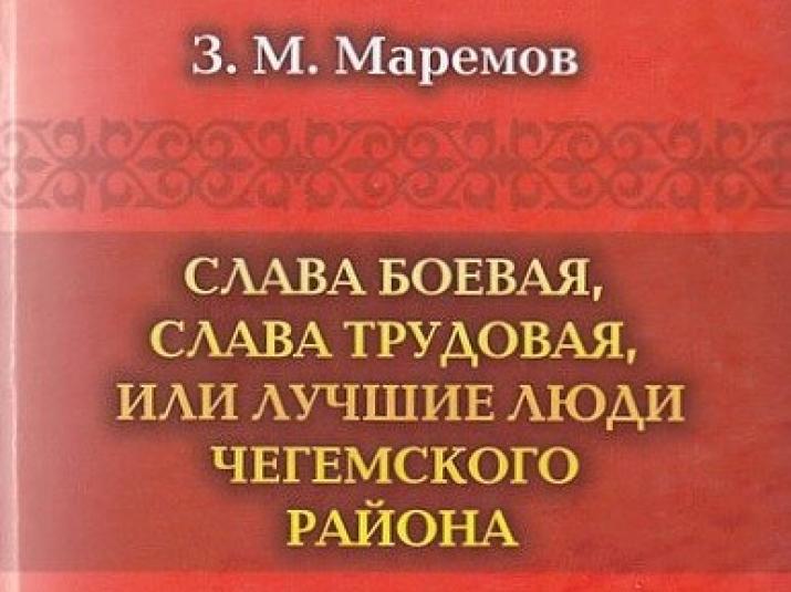 Листая страницы книги З. Маремова «Слава боевая. Слава трудовая, или Лучшие люди Чегемского района», лишний раз убеждаешься в том, что, казалось бы, сиюминутные – оперативные материалы – всегда обращены в будущее. В них история, хроника времени, некая летопись былого, которая в будущем ретроспективно расскажет, чем жили герои сборника. Тем и ценны такие издания, в которых получило прописку Время и его герои, без которых нет и не может быть представления об эпохе.